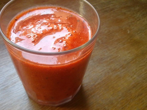 Thực đơn 6: Một ly sinh tố trộn lẫn sữa chua không béo, 1 muỗng cà phê đường, 1 muỗng cà phê ca cao, và 1/2 chén dâu tây đông lạnh.