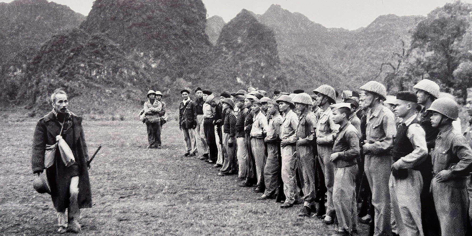 Bác Hồ và toàn quân trong thời điểm chuẩn bị xuất phát tấn công đồn Đông Khê 1950.