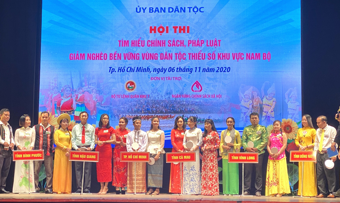 Ngày 6/11, tại Nhà hát TP.HCM, Ủy ban Dân tộc (UBDT) chủ trì, phối hợp với UBND TP.HCM và Bộ Thông tin - Truyền thông, Bộ Tư pháp, Bộ LĐTB&XH, Ngân hàng Chính sách xã hội Trung ương tổ chức Hội thi Tìm hiểu chính sách, pháp luật giảm nghèo bền vững vùng Dân tộc thiểu số (DTTS) khu vực Nam bộ năm 2020.