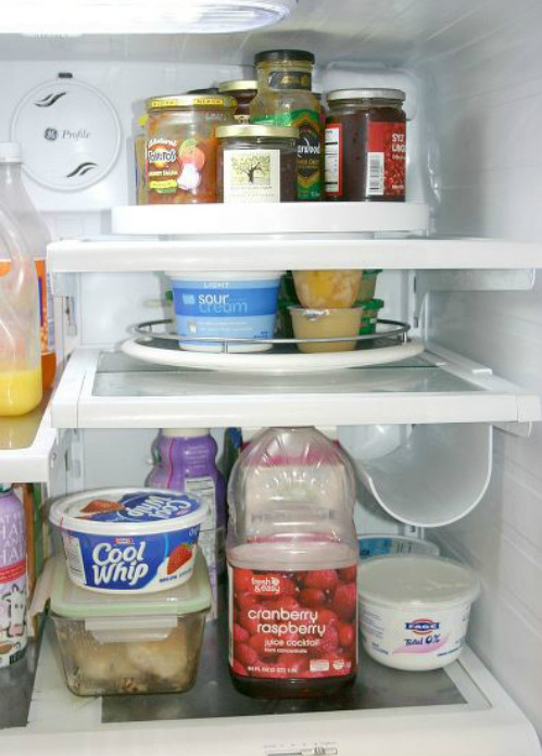 Những loại gia vị ít sử dụng cũng có thể bảo quản trong tủ lạnh và bạn nên xếp vào một chiếc khay tròn, khi cần thì nhấc ra dễ dàng.
