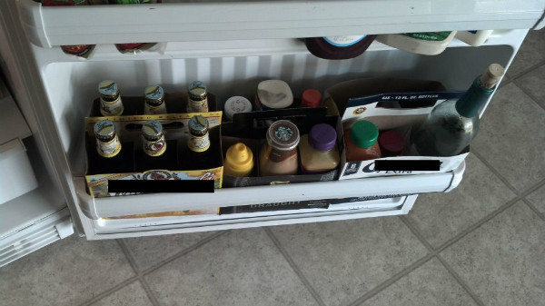 Một chiếc kẹp ghim có thể giúp bạn giữ những chai bia cố định và tạo thêm ngăn để chứa vật dụng khác.