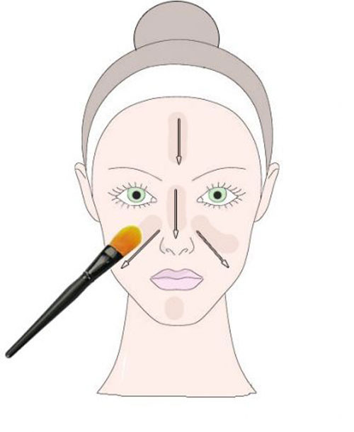 Sử dụng chổi tán kem nền theo chiều từ trên xuống và từ giữa chếch sang hai bên giúp kem đều màu hơn.