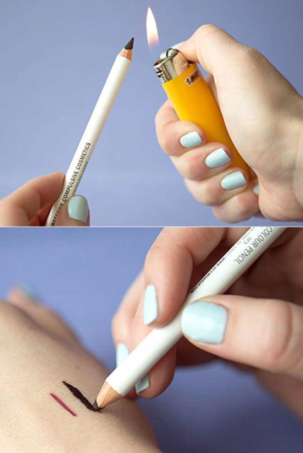 Nếu muốn chì vẽ mắt trở nên mềm và dễ kẻ hơn, bạn hơ cây chì trên lửa vài giây.
