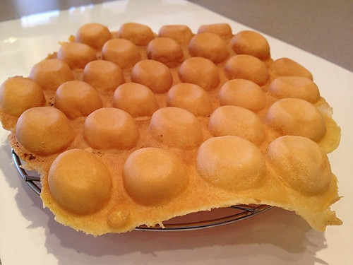 Bánh trứng gà non có hình dáng giống một khay đựng trứng gà, làm từ bột mì, trứng, đường, sữa sau đó cho vào máy nướng dập khuôn để tạo thành các đốm phồng tròn.