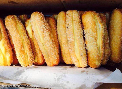 Được coi là món ăn hấp dẫn trong mùa đông 2014, bánh mỳ rán su kem có nhân béo ngậy, ngọt ngào, bên ngoài phủ bột chiên xù đẹp mắt.
