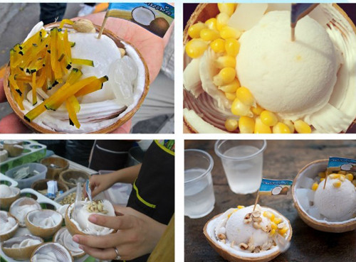 Món này hấp dẫn thực khách ở vị béo ngậy của kem và ngọt ngào từ dừa Thái. Để tăng hương vị, một số quán còn bổ sung thêm nhiều loại kem như vani, sầu riêng...