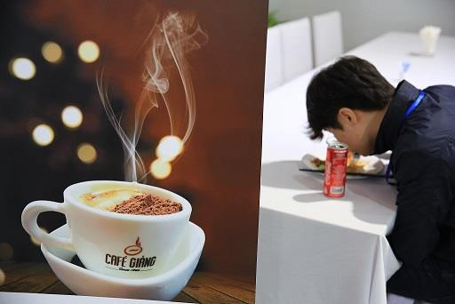 Món cafe trứng thơm ngon sẵn sàng phục vụ các nhà báo, nhưng ai ai cũng vội vã và ít thời gian, hơn nữa nó đặt ở cuối phòng ăn, nên hầu như... bị lãng quên.