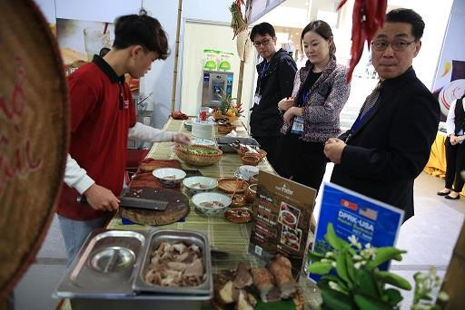 Các nghệ nhân nấu xôi Phú Thượng cũng đã mang tới món xôi truyền thống của làng tới khách quốc tế.