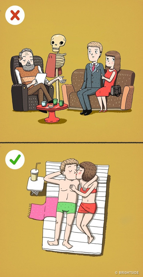 Không có gì tồi tệ hơn việc buộc đối tác của bạn phải chia sẻ sở thích cùng bạn. Nếu anh ta không thích đến rạp hát hoặc triển lãm hay bạn hoàn toàn chẳng quan tâm đến thể thao chút nào thì hai bạn nên thực hiện những điều này một cách riêng biệt. Như vậy, cả hai bạn sẽ có đầy đủ những cảm xúc tích cực và từ đó giúp cải thiện bầu không khí trong gia đình