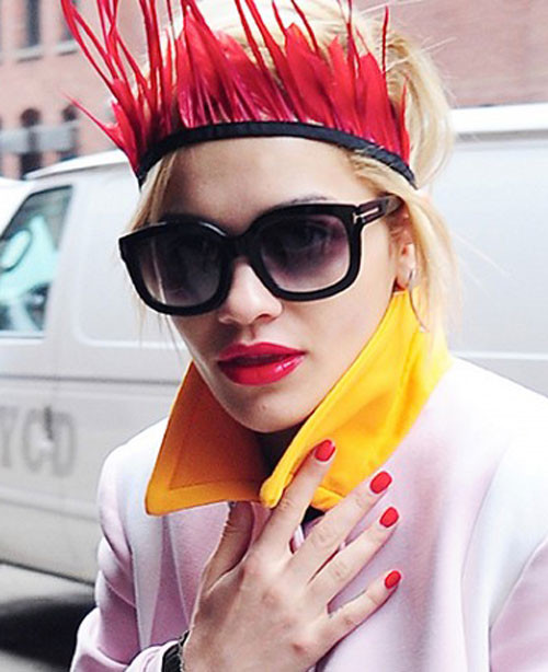 Băng đô đỏ rực rỡ của Rita Ora là gợi ý tuyệt vời cho những buổi tiệc xuân quậy tưng bừng. Nổi bật và phá cách là những nét toát lên từ kiểu băng đô này.
