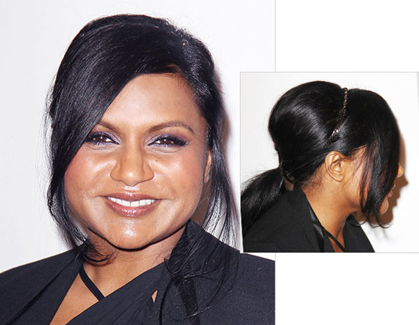 Nếu làm tóc đánh phồng đỉnh đầu giống Mindy Kaling, bạn gái có thể nhấn nhá đơn giản bằng một chiếc băng đô kim tuyến dạng mảnh.
