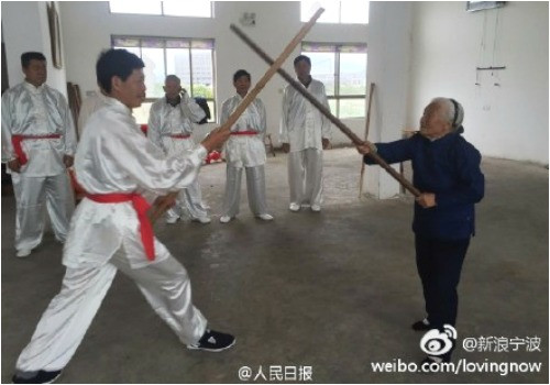 Ở cái tuổi "xưa nay hiếm", cụ bà Trương Hà Tiên, 94 tuổi ở Ninh Ba, Chiết Giang, Trung Quốc ngày ngày vẫn luyện công và chỉ dạy các đệ tử để lưu truyền võ thuật cổ truyền Trung Quốc.