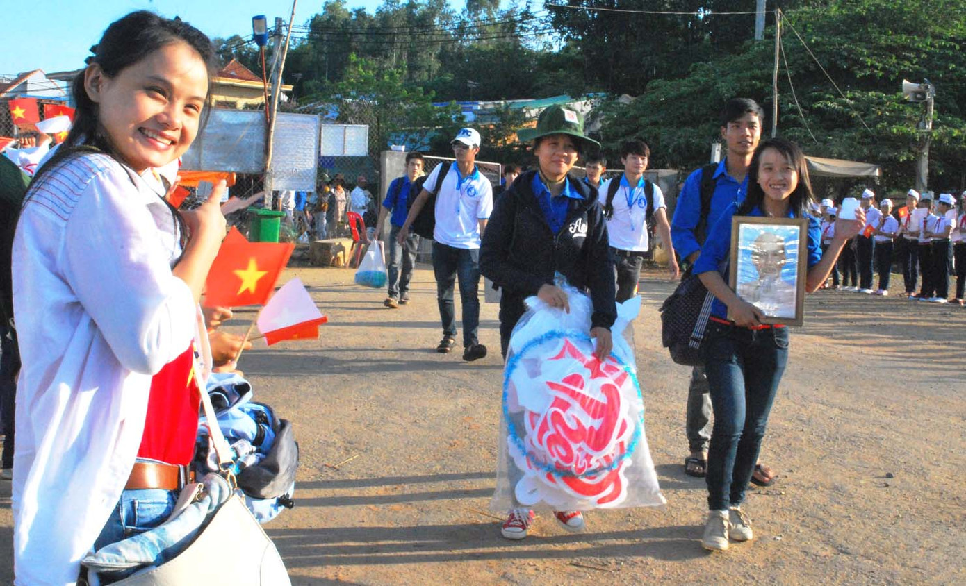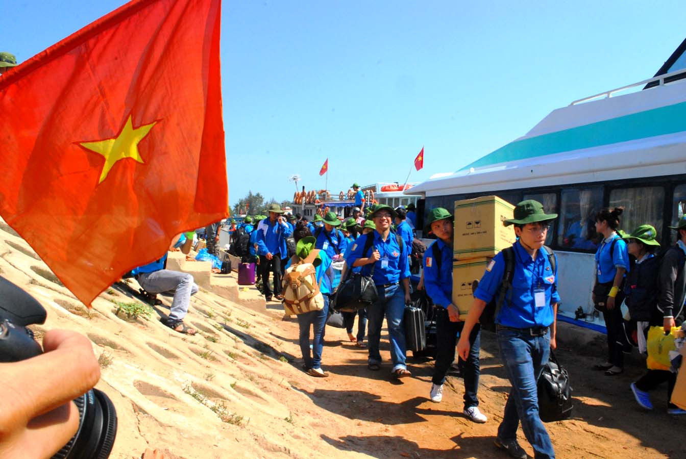 Từ sáng sớm, Ban tổ chức gồm Trung ương Hội Sinh viên VN, Trung tâm Hỗ trợ và Phát triển SVVN, Tỉnh Đoàn Quảng Ngãi và huyện Lý Sơn phải huy động đến 4 chuyến tàu cao tốc mới đưa hết cả ngàn bạn trẻ ra tới đảo.