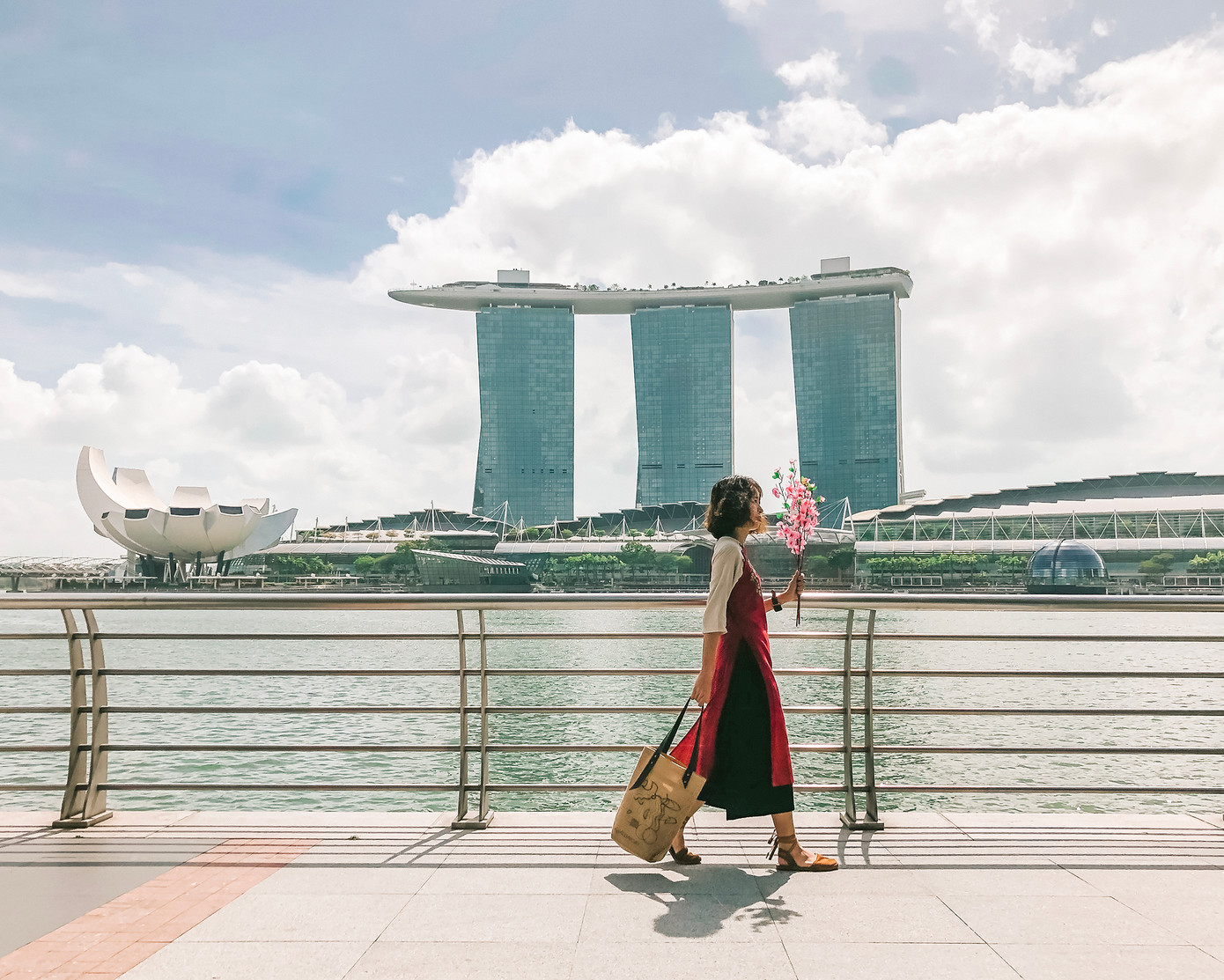 “Khi đó, mình đã đi bộ vòng quanh đảo quốc Sư tử. Mỗi ngày, mình xuống một trạm tàu điện và đi bộ vòng quanh để chụp ảnh đời sống, thiên nhiên… Vẻ đẹp Chinatown thu hút du khách bởi vẻ đẹp pha trộn giữa hiện đại và nét cổ kính, với nhiều ngôi chùa lâu đời và hàng quán ẩm thực đa dạng. Hay những lúc không có người xung quanh, Thương có thể tháo khẩu trang để chụp ảnh các con đường ở Singapore…”, Thương tâm sự.