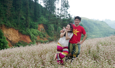 Trinh kể những ngày đầu thu 2017, thời gian hoa tam giác mạch nở rộ, cô và bạn trai từ Quảng Nam đến Lào Cai rồi thuê xe máy lên xã Lử Thẩn, huyện Si Ma Cai để chiêm ngưỡng loài hoa này.