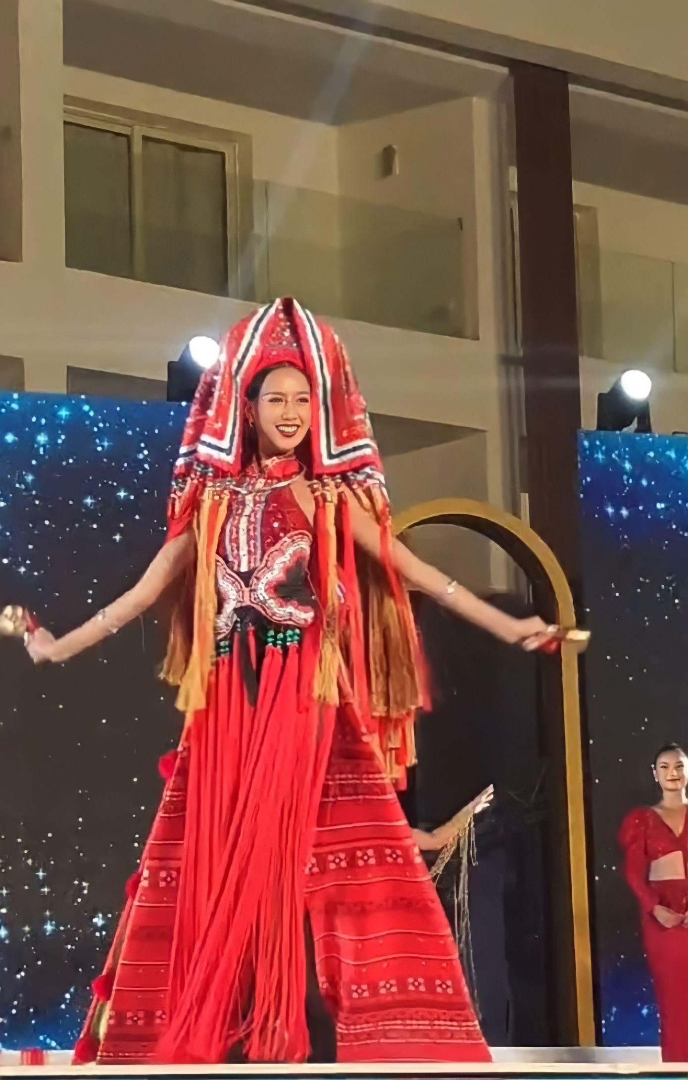 Đây là thiết kể của tác giả Phạm Minh Hiếu, được lấy cảm hứng từ trang phục cưới của phụ nữ Dao đỏ với những họa tiết thổ cẩm đặc trưng. Thiết kế có màu sắc rực rỡ, phần cánh mang hình ảnh về một nếp sống đời thường của người dân tộc Dao, cộng thêm phần tà rộng có thể điều chỉnh trong khi trình diễn.