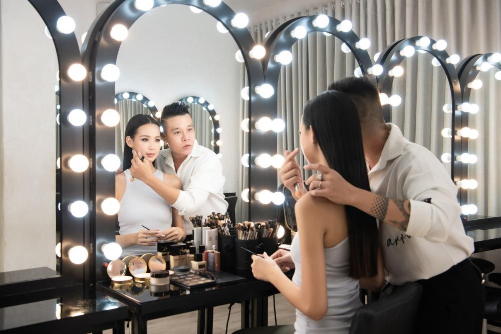 Nàng Á hậu cũng rất chăm chỉ học trang điểm với chuyên gia, có những ngày cô học đến tận khuya.