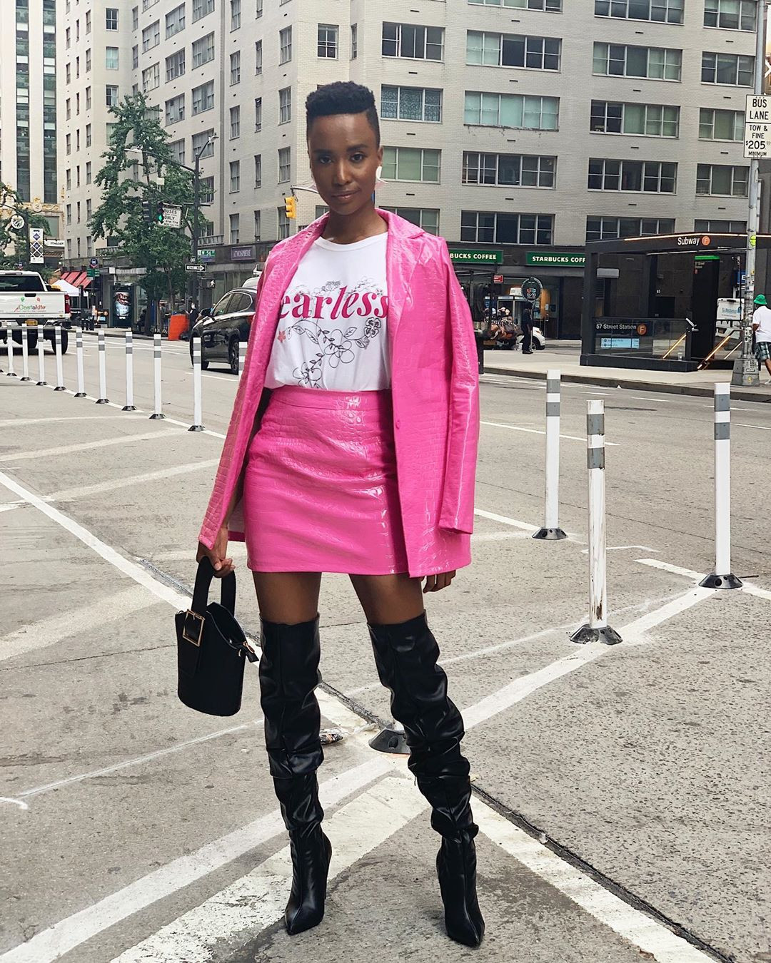 Hoa hậu Hoàn vũ 2019 Zozibini Tunzi diện set đồ cá tính trên phố.