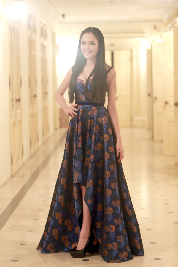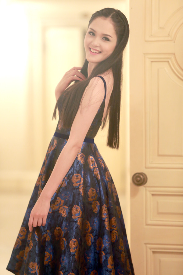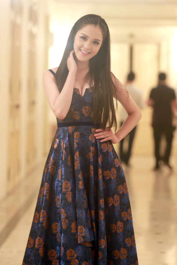 Người đẹp vẫn giữ cho mình kiểu tóc đen suôn thẳng truyền thống nhưng không kém phần quyến rũ.