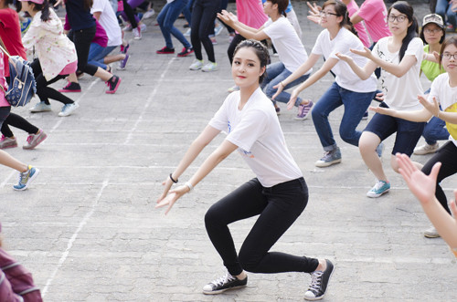 Chiều 28/9 tại tại Cung Văn hóa Thể thao Thanh niên Hà Nội, Hoàng Anh có buổi tập nhảy cùng nhiều bạn trẻ.