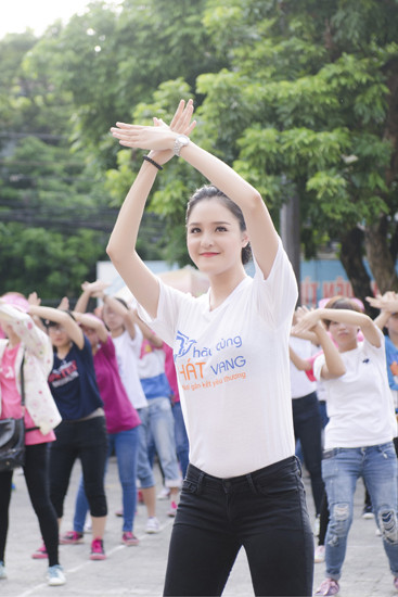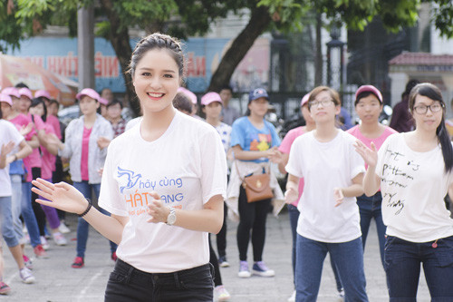 Á hậu Hoàng Anh tập nhảy mừng ngày giải phóng thủ đô
