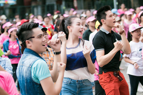 Buổi tập còn có sự tham gia của MC Thái Dũng, người mẫu Trà Ngọc Hằng và diễn viên Minh Anh.