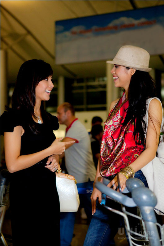 Ra tiễn Hòang My tại sân bay có gia đình cô và đại diện của công ty Hòan Vũ, và người đẹp Dương Trương Thiên Lý.