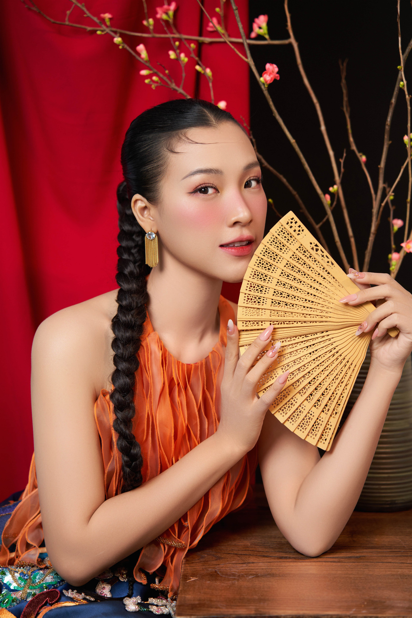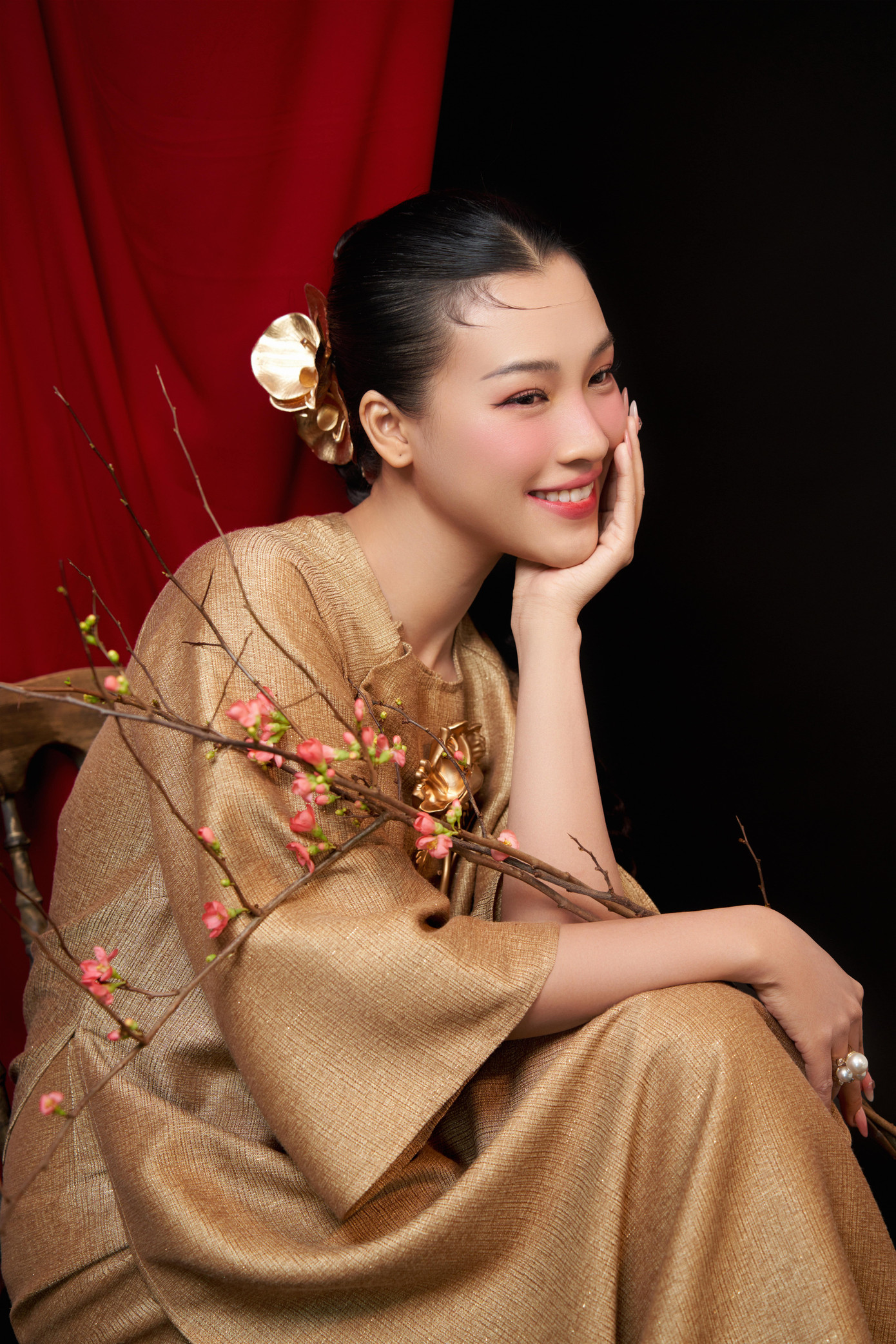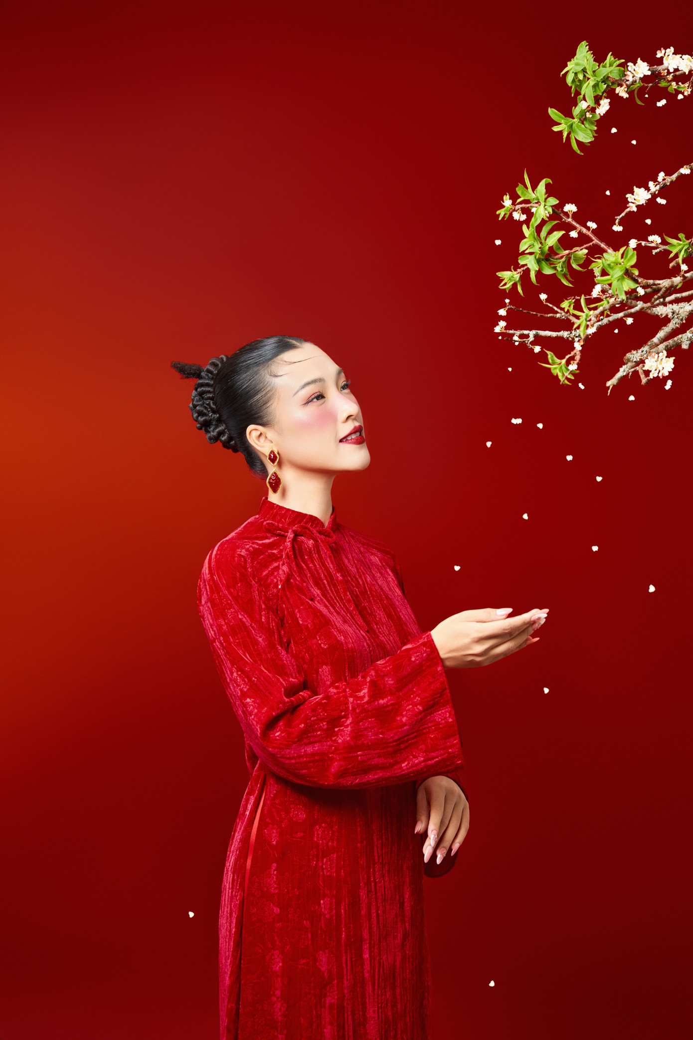 Á hậu Hoàng Oanh tung bộ ảnh Tết Giáp Thìn với loạt trang phục truyền thống đầy ấn tượng. Trên nền concept mang sắc đỏ ấm áp, cô khoe nét đẹp đậm chất Á Đông.