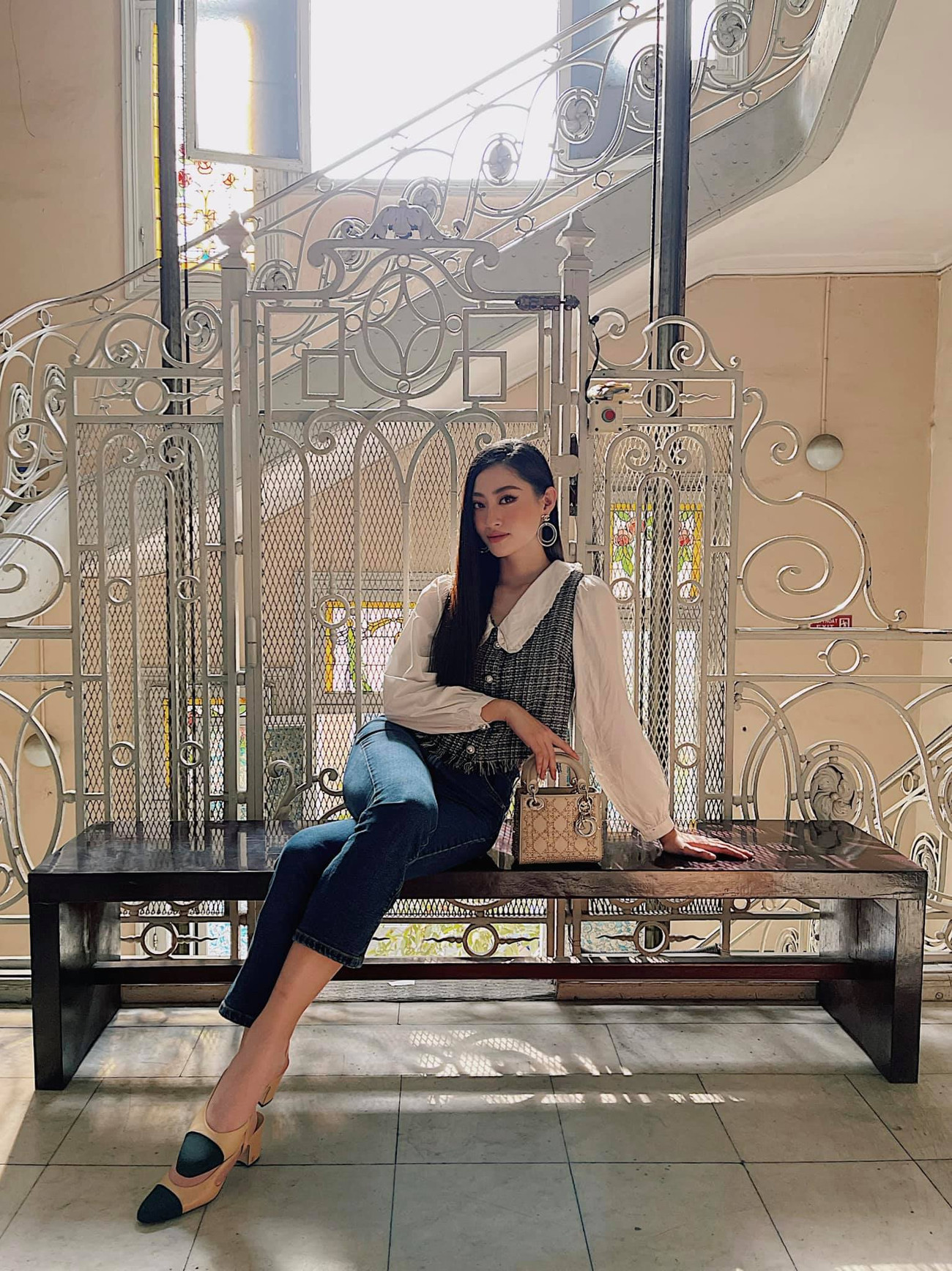 Hoa hậu Lương Thuỳ thanh lịch, duyên dáng với set đồ kín đáo.