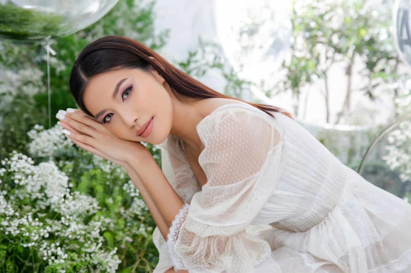 Minh Tú xuất hiện với vẻ dịu dàng, thuần khiết; khác hẳn vẻ nóng bỏng thường thấy.