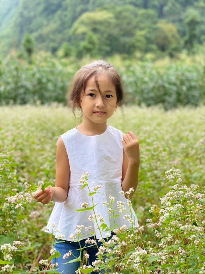 Trước đó, gia đình Hà Kiều Anh cũng có chuyến du lịch ở Hà Giang. Hoa hậu khoe khoảnh khắc cô con gái út cực kỳ đáng yêu trên cánh đồng tam giác mạch.