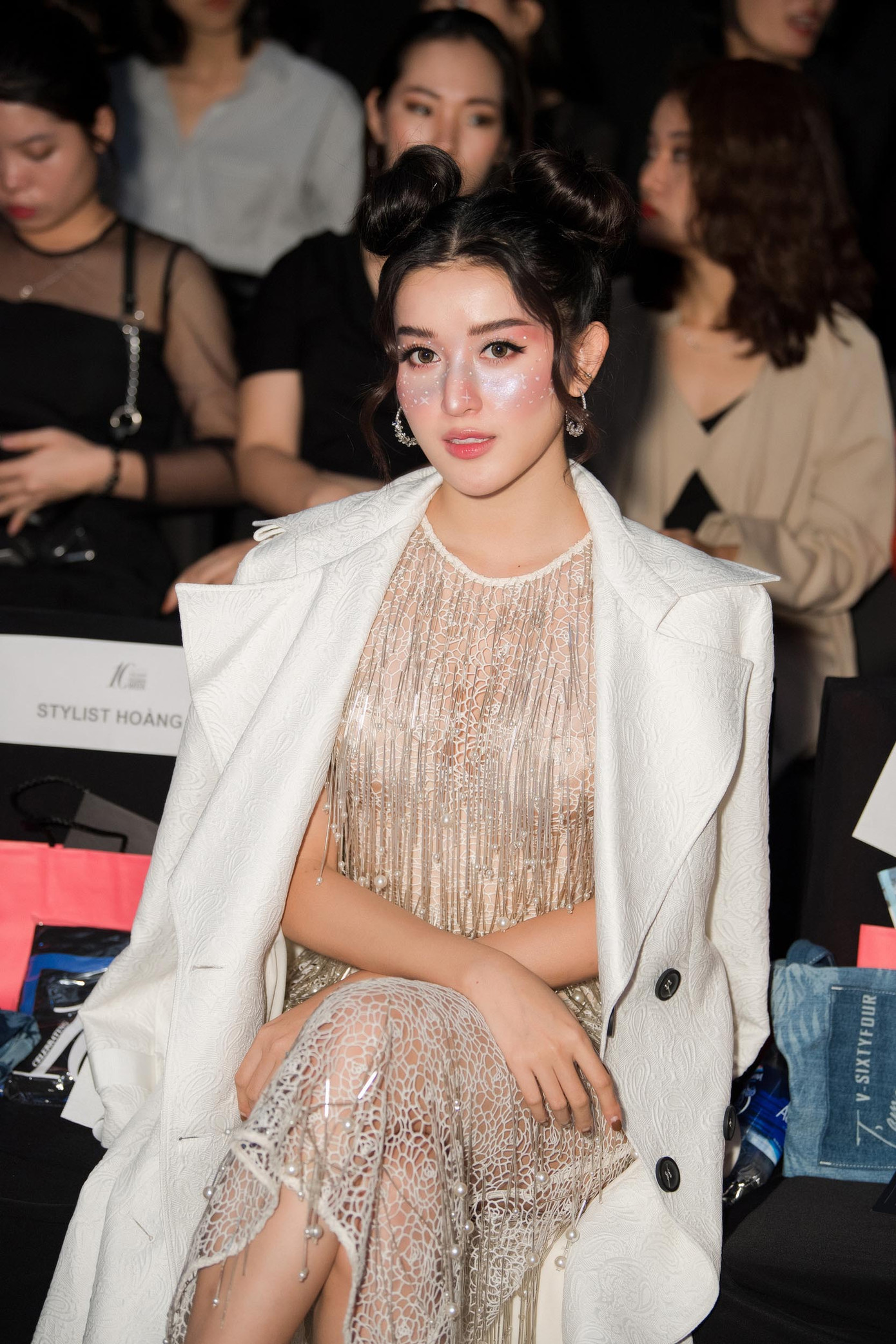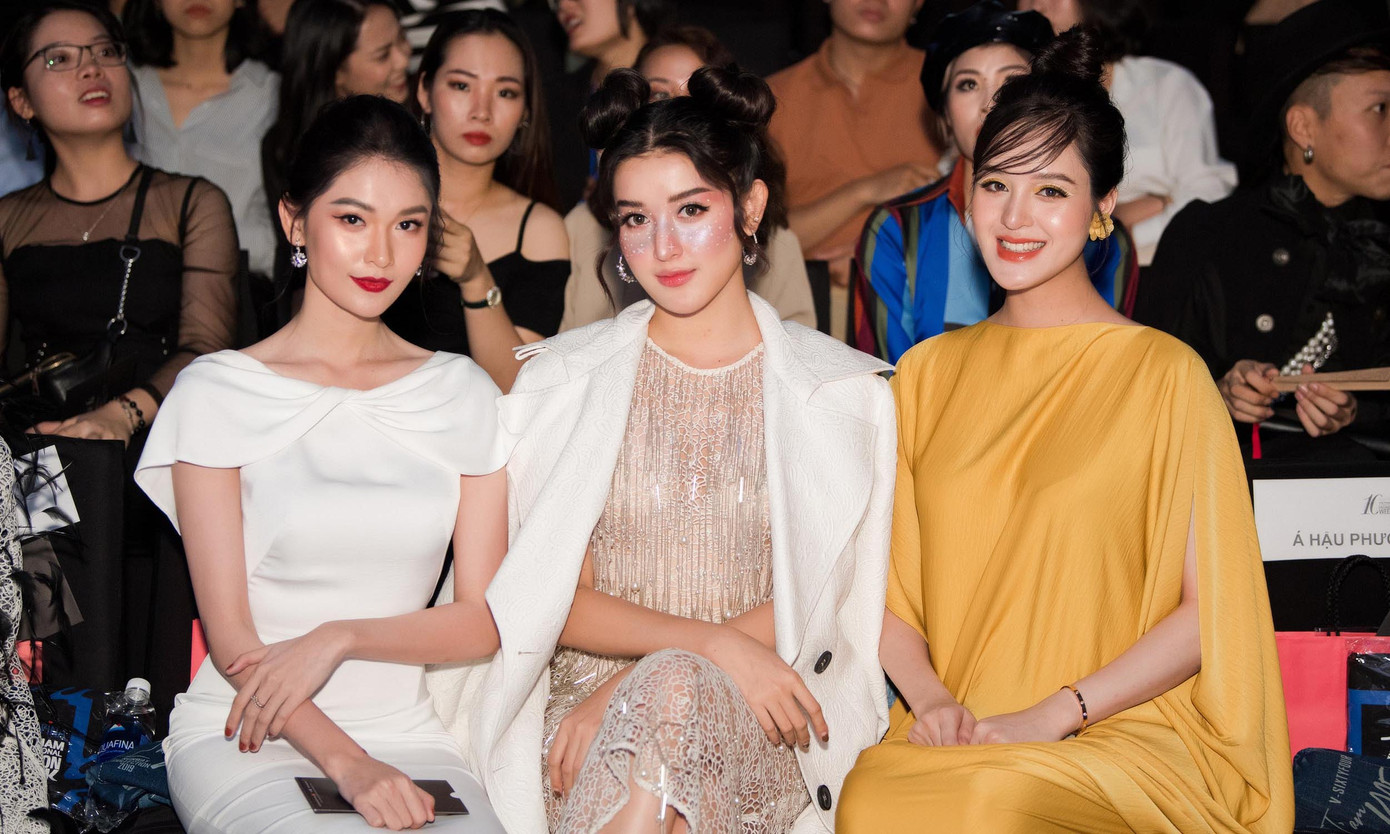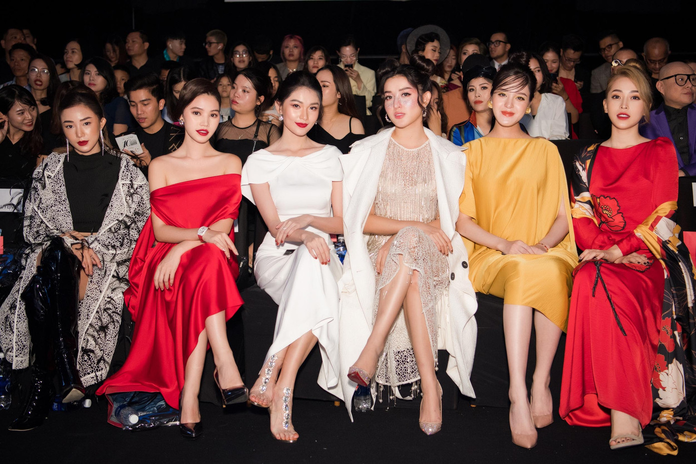 Dàn người đẹp diện váy áo lộng lẫy trên hàng ghế đầu của show thời trang.