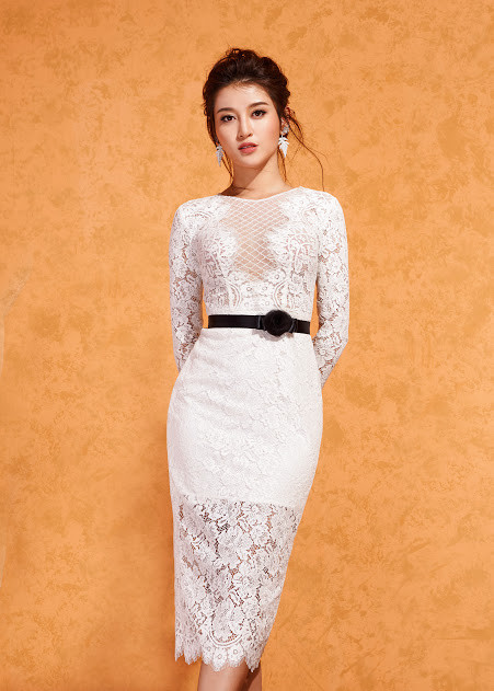Chất liệu ren xuyên thấu giúp tôn vóc dáng của Huyền My nhưng vẫn rất tinh tế và thanh lịch.