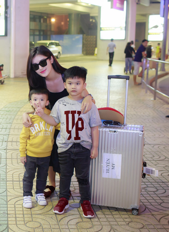 Các fans nhí tranh thủ chụp ảnh cùng Á hậu Huyền My tại sân bay.