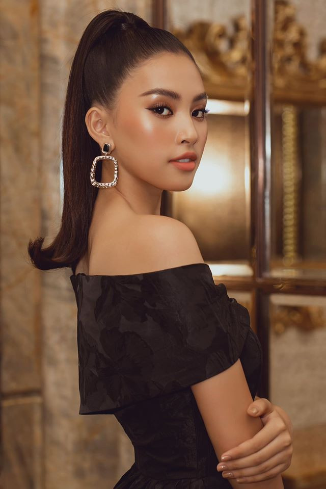 Hoa hậu Tiểu Vy diện đầm đen thanh lịch nhưng không kém phần gợi cảm khi tham dự một show thời trang ở TP. HCM.