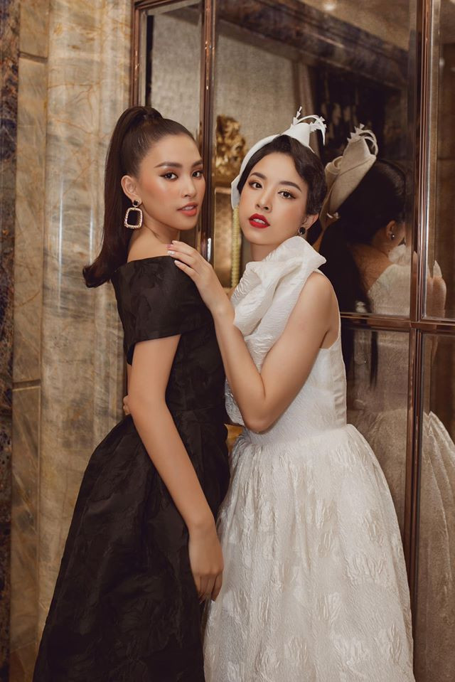 Trong khi Tiểu Vy bí ẩn với tông đen thì Thuý An lại hoá nàng tiểu thư yêu kiều với bộ váy xoè màu trắng.