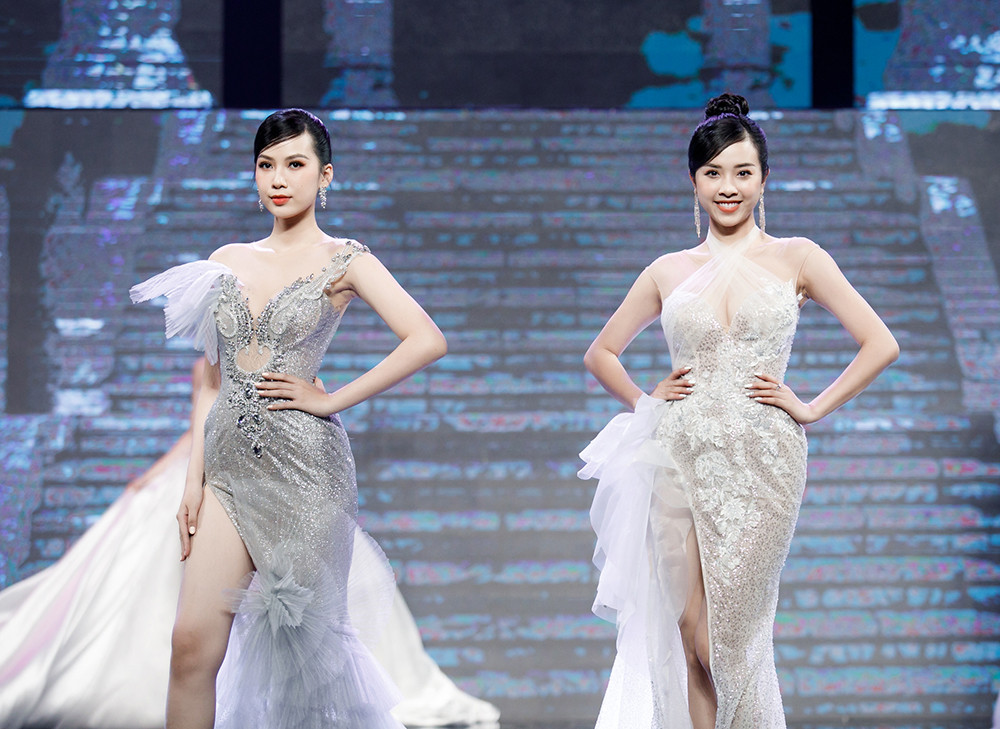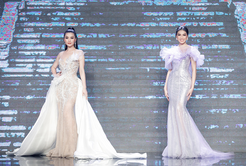 Người đẹp Nhân ái Huỳnh Nguyễn Mai Phương và Hoa hậu Thanh Khoa sải bước quyến rũ trên sân khấu.