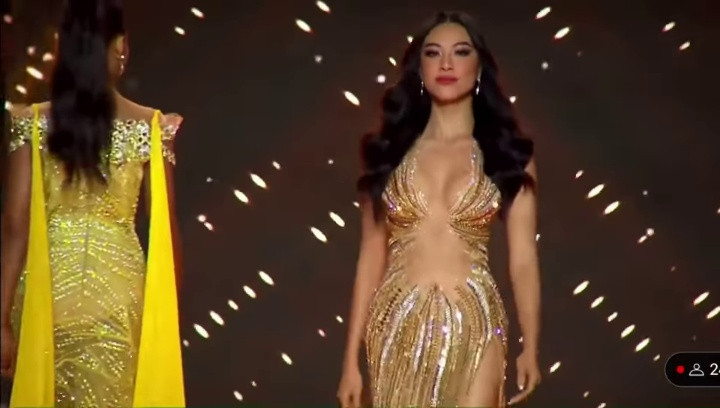 Mặc dù phải đợi khá lâu mới đến lượt mình trình diễn nhưng khi bước ra sân khấu Á hậu Kim Duyên vẫn tỏa sáng với nhan sắc xinh đẹp, quyến rũ và thần thái trình diễn chuyên nghiệp.