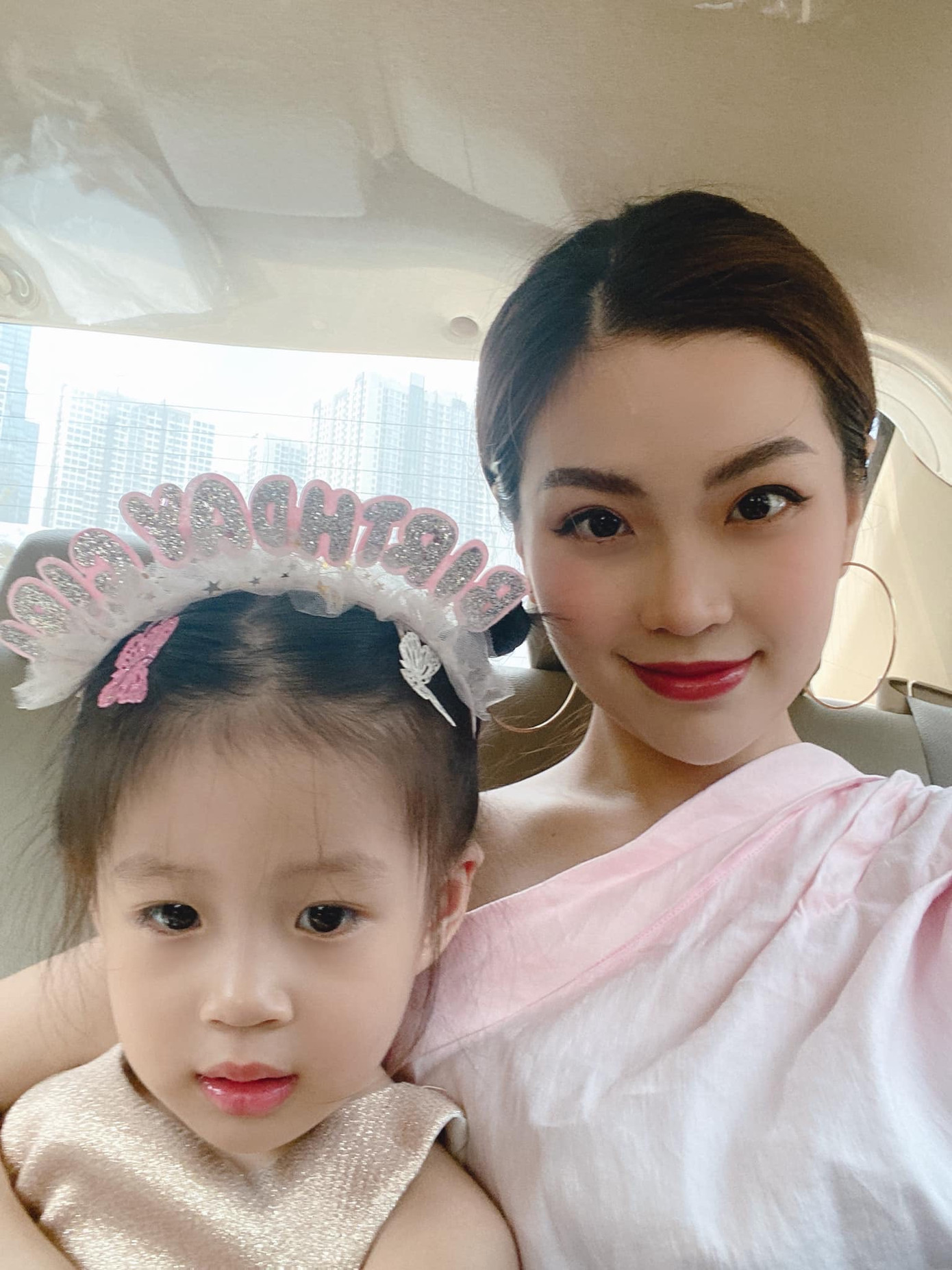 Á hậu Diễm Trang và con gái đáng yêu cổ vũ đội tuyển Việt Nam.