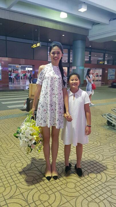 Vì bố mẹ và em trai vẫn ở cạnh Thanh Tú từ sau đêm Chung kết và đi cùng chuyến bay nên chỉ có vợ chồng và con của anh chị lớn lên sân bay đón. Gia đình tiết lộ, đây cũng là "đội hình" đón chị gái Tú - Á hậu Trà My ngày trở về sau cuộc thi Hoa hậu Hoàn vũ 2015.
