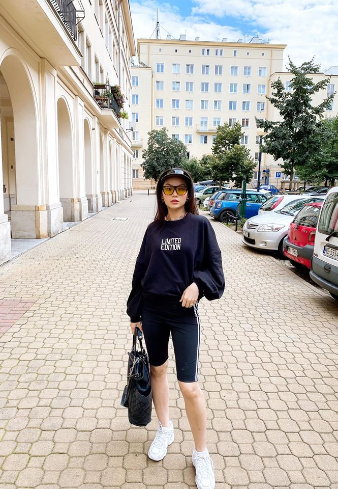 Á hậu Diễm Trang diện set đồ thể thao xuống phố ở Ba Lan.