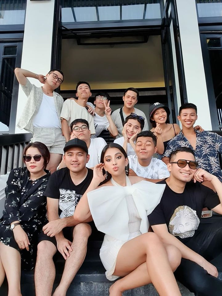 Hoa hậu Tiểu Vy nhí nhảnh cùng ê-kíp chụp hình.