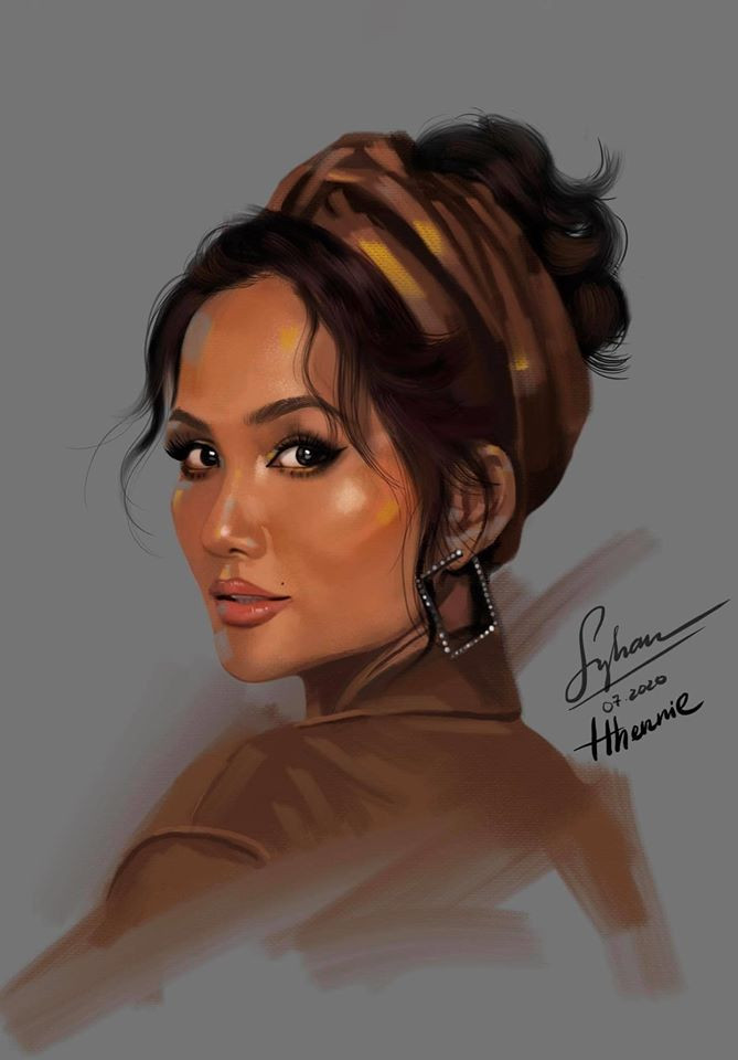 Hoa hậu H'Hen Niê ấn tượng, xinh đẹp qua bức phác hoạ của một người hâm mộ.