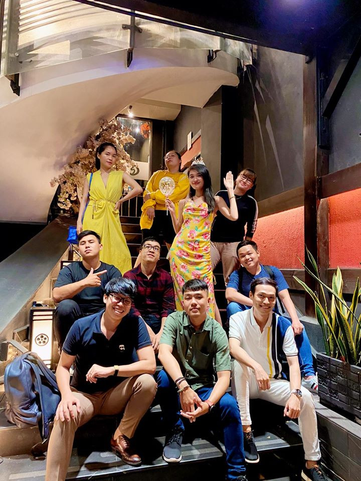 Á hậu Thuỳ Dung diện váy hoa rực rỡ khi đi ăn tiệc sinh nhật muộn cùng hội bạn thân.
