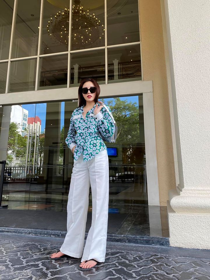 Á hậu Kim Duyên diện trang phục tông đen-trắng ấn tượng khi xuống phố.
