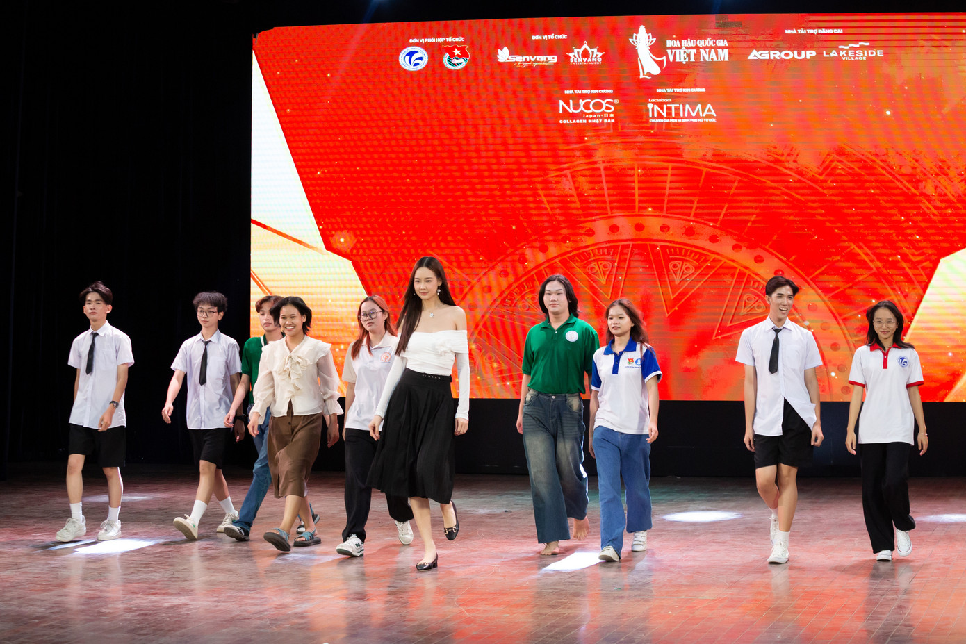 Để góp phần làm cho chương trình thêm sôi động, dàn người đẹp cùng các bạn sinh viên đã có cơ hội giao lưu qua màn catwalk và hô tên. Trên sân khấu, các bạn sinh viên đã thể hiện những bước đi đầy tự tin và uyển chuyển, thu hút sự chú ý và cổ vũ nhiệt tình từ mọi người. Đây cũng là một trong các màn thể hiện được trông chờ nhất của các cuộc thi nhan sắc. Bên cạnh đó, người đẹp Nguyễn Vĩnh Hà Phương cũng thể hiện tài năng ca hát để gửi đến các bạn sinh viên.