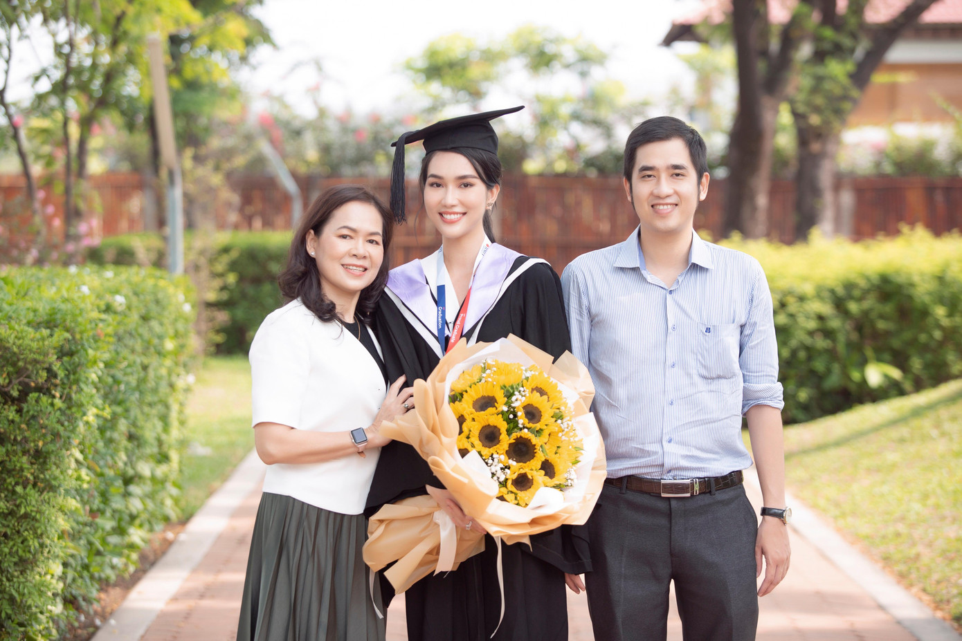 Người thân, bạn bè và giảng viên cũng đến chúc mừng cho người đẹp trong ngày lễ tốt nghiệp. Cô vui mừng chia sẻ niềm hạnh phúc bên mẹ của mình.