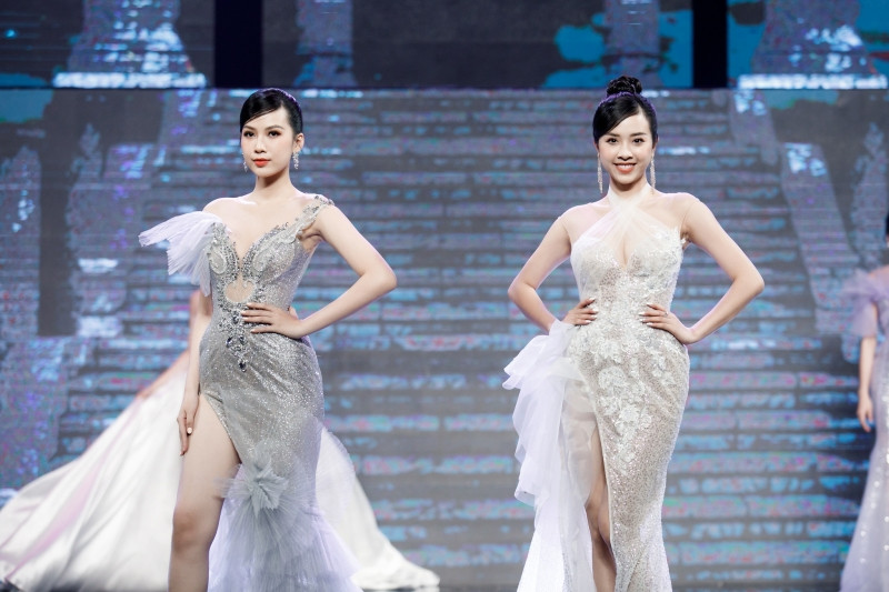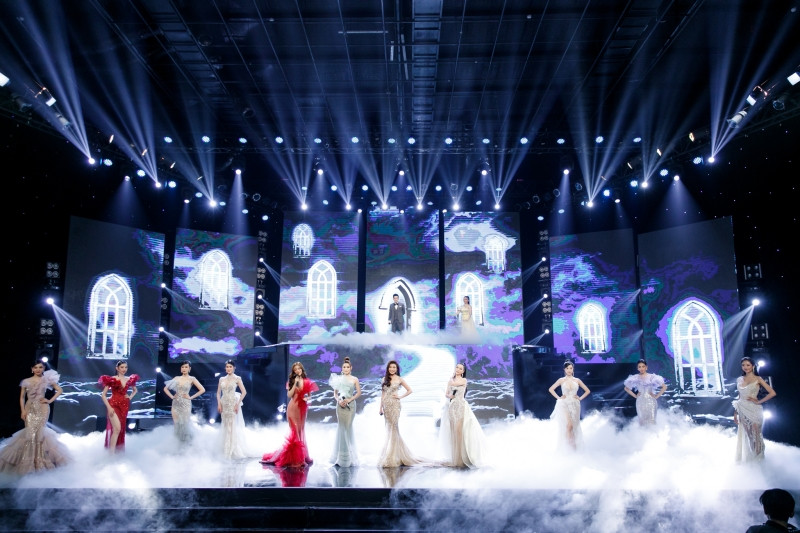Trong không gian của thời khắc chuyển giao năm mới, các người đẹp đã trình diễn BST lãng mạn mang tên Kiss From The Cloud - Nụ Hôn Đến Từ Mây Trời của NTK Phạm Đăng Anh Thư.