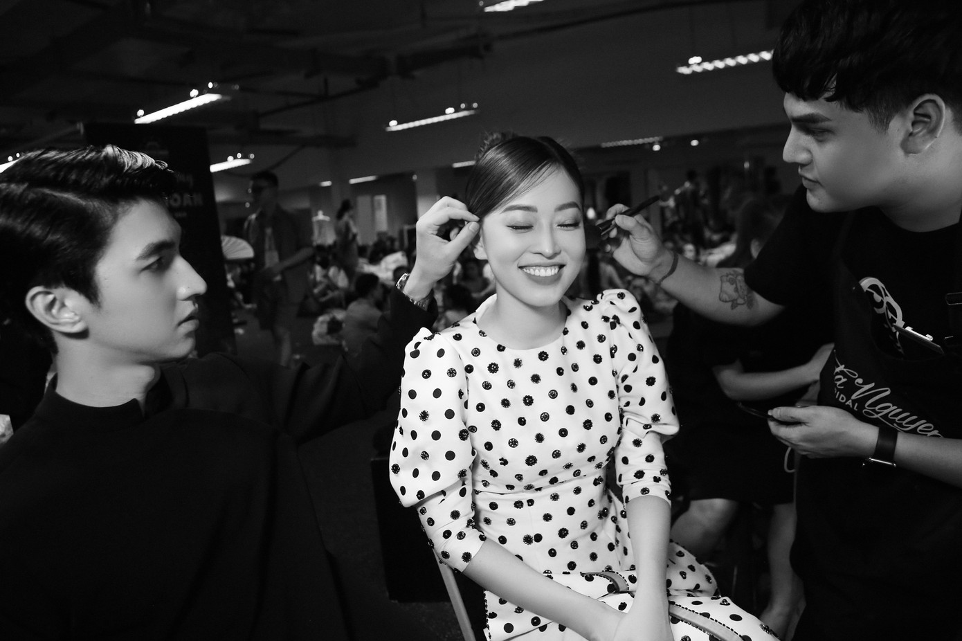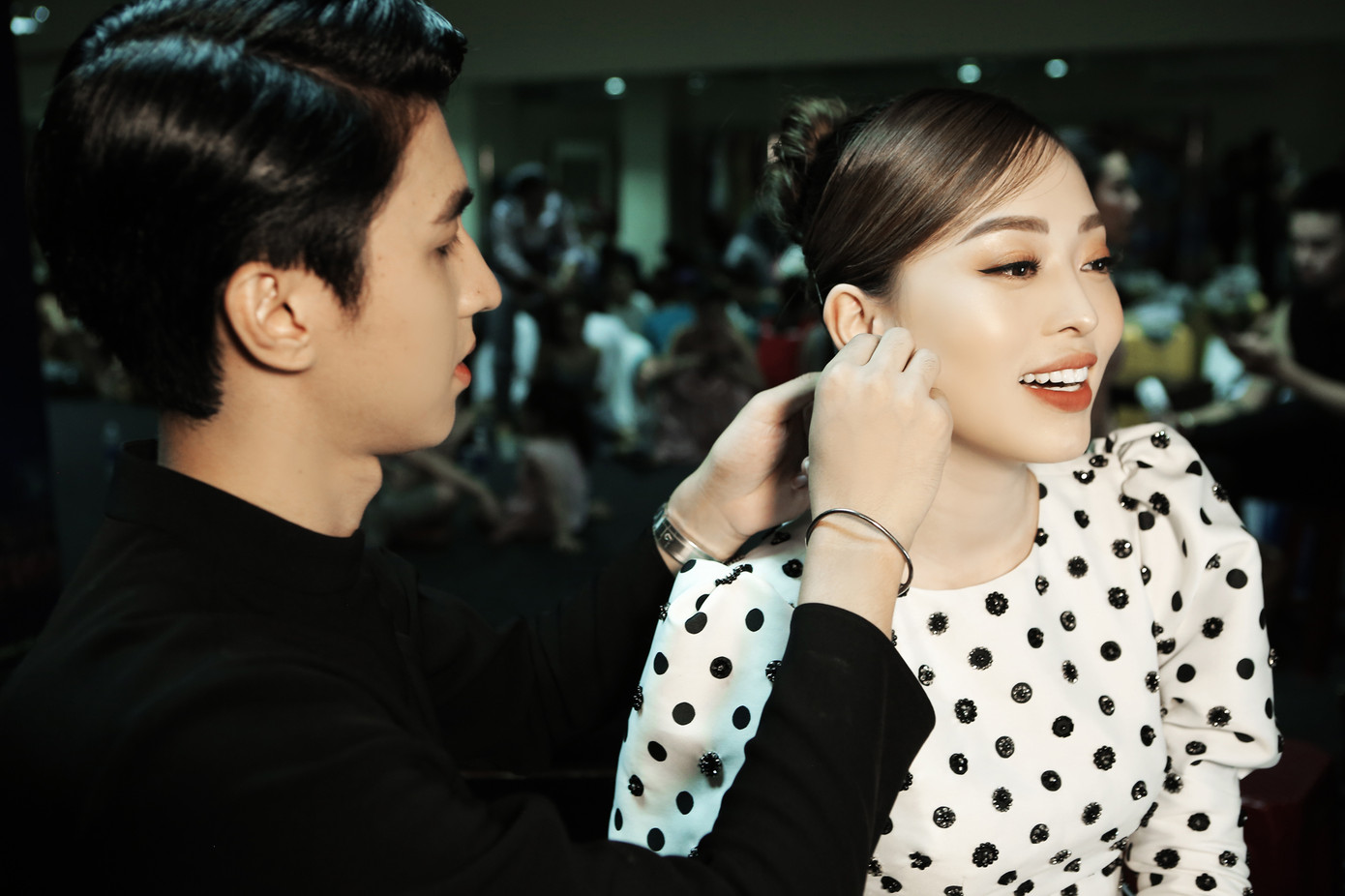 Ở hậu trường show, đôi tình nhân luôn dành cho nhau những cử chỉ chăm sóc chu đáo.