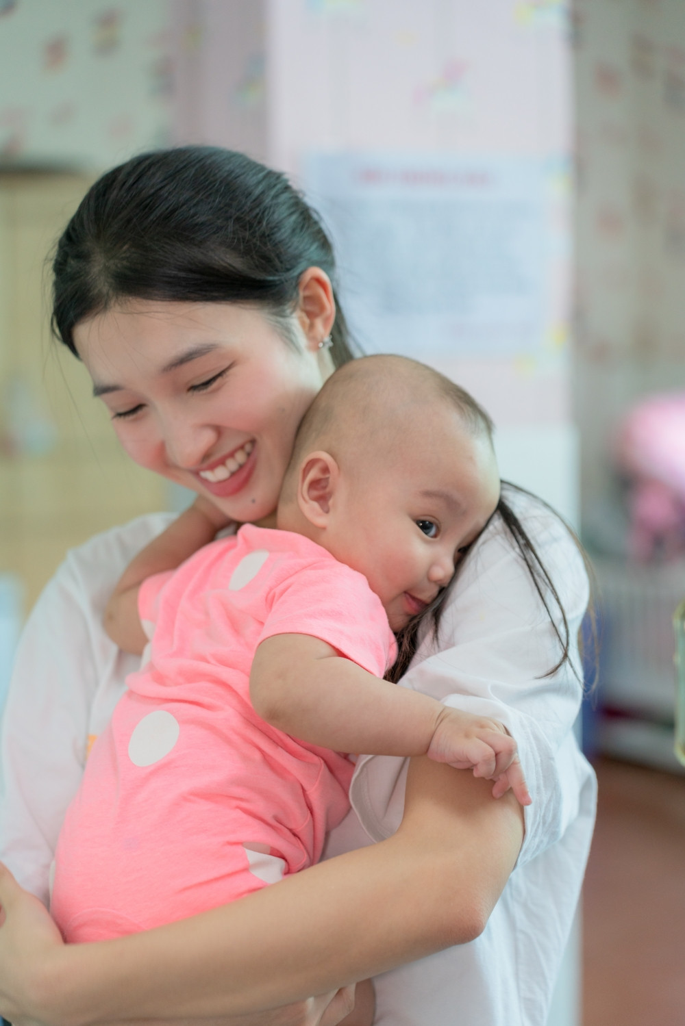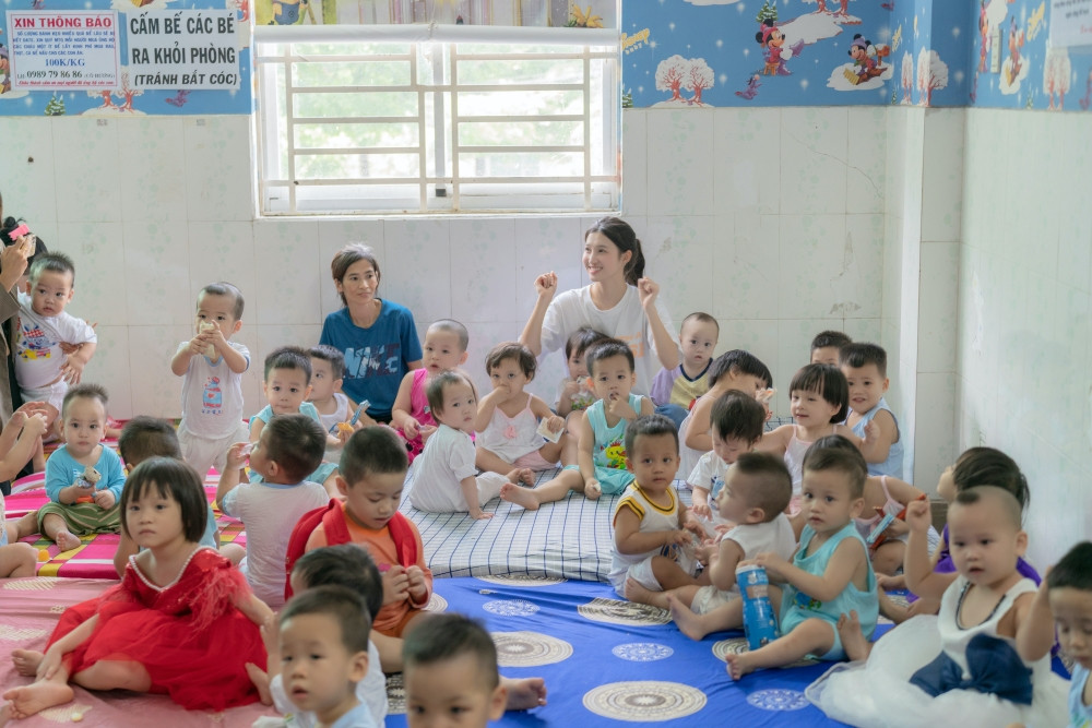 Lần này đến với Mái ấm Hoa Hồng, nàng hậu sinh vô cùng khéo léo và dịu dàng khi chơi cùng và chăm sóc các em. Phương Nhi được các em vây quanh, quấn quýt suốt buổi ghé thăm.